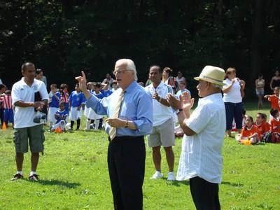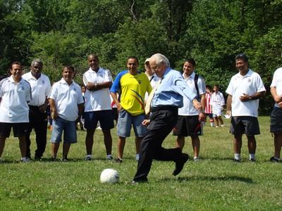 U.S. Congressman Bill Pascrell with the ceremonial kick-off to start the Summer League Season.