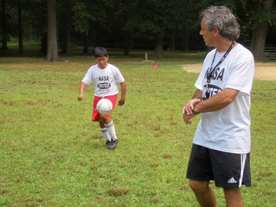 2014 - Group photo during camp at George Washington MS. Pictured are the players along with NASA Camp staff members; Julio Reyes, Christian Calleagri, Artim Mahmudi and Leo Caraballo.