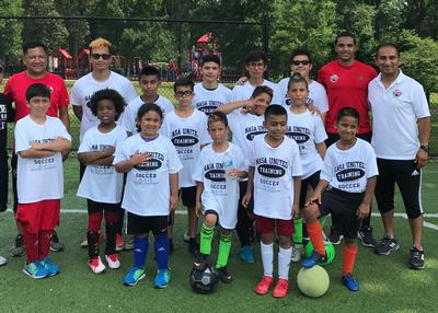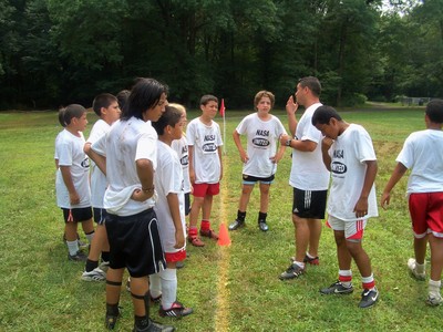 2013 - Group photo during camp at Goffle Brook Park. Pictured are the players along with NASA Camp staff members; Julio Reyes, Christian Callegari, Bonny Londono, Walther Castillo and Roy Muriel.